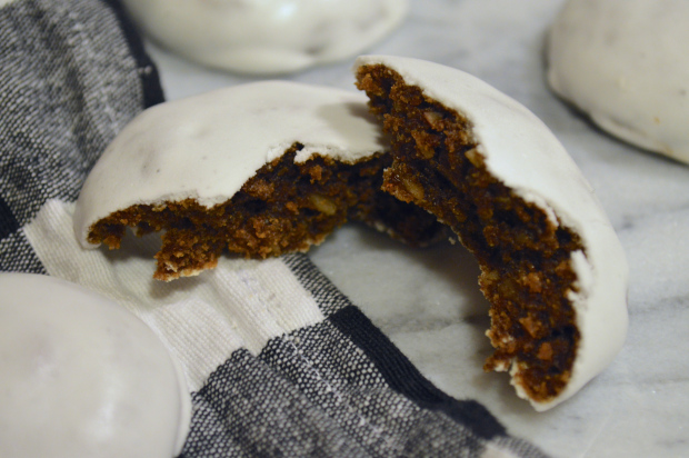 - With clean hands, dip your still warm cookies into the glaze and completely cover them.