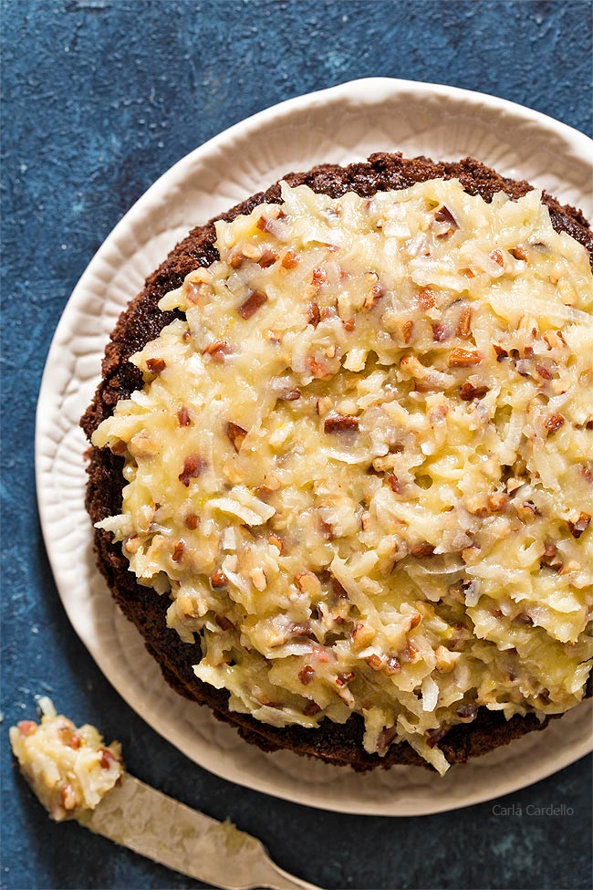 - Remove from heat and stir in vanilla, toasted pecans, and coconut.